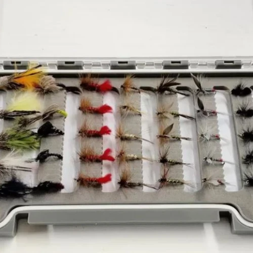 Our range include barbed and barbless wet flies, dry flies, goldhead trout flies, nymph fishing flies, buzzers, and many more, all fishing flies are hand tied exclusive for us by our dedicated team of fly tyers. We have collections of pike fishing flies, salmon flies and bass flies. You can also find a selection of floatants and sinkants, fly line and leaders for your trout flies, plus rods, reels and all the accessories you need to hit the bank all here on our online store