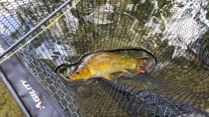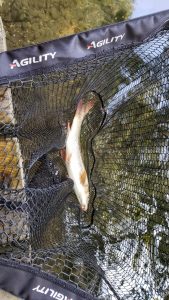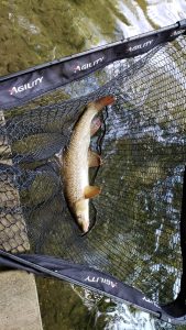 Mid afternoon the the beat owner asked me to get him a trout, usually a pretty simple task even given the warm weather this year. It was mostly overcast and I could see fish rising along the beat so I started working through with a size 18 Black Gnat (my go to dry fly if I can see rises but I can’t see what for). I caught five grayling fairly quickly ranging from 1/2lb to 1lb but couldn’t see any evidence of decent sized trout. I switched tactic and started using a size 16 goldhead Hares Ear nymph but to no avail. As the evening was starting to draw in I decided to move into one of the deep pools to try and pick up a sea trout instead, I kept the same hares ear on and cast it out into the pool letting it sink to the bottom then drift down the pool to where the fish usually lie where I would lift it in front of them to induce a take, as I lifted it I felt a very solid take and thought I was finally in luck however after ten minutes I managed to raise the fish to the surface to find it was a barbel of 5lb 1oz. I kept trying the same method resulting in two roach of 1lb each, another barbel of 4lb 2oz and a common carp of 3lb 3oz. I’m pleased to say I managed to finally get a trout of 2lb out of the head of the pool on the hares ear. Barbel have been caught on the water before by fly while salmon fishing with JW nymphs but this is the first time a carp or roach has been caught on the fly.